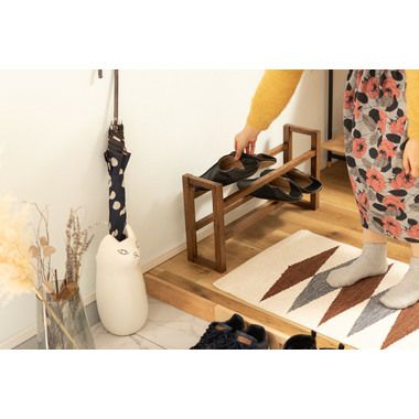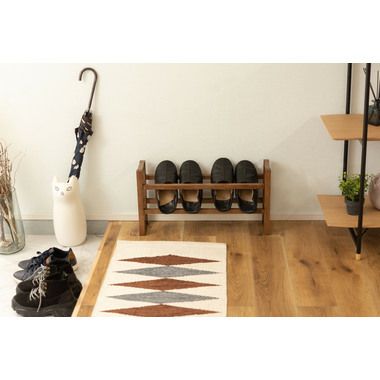 ●耐久性があり高級木材の一つとされる、美しく個性的な雰囲気を持つ天然木(オーク)の無垢材を使用したスリッパラック。