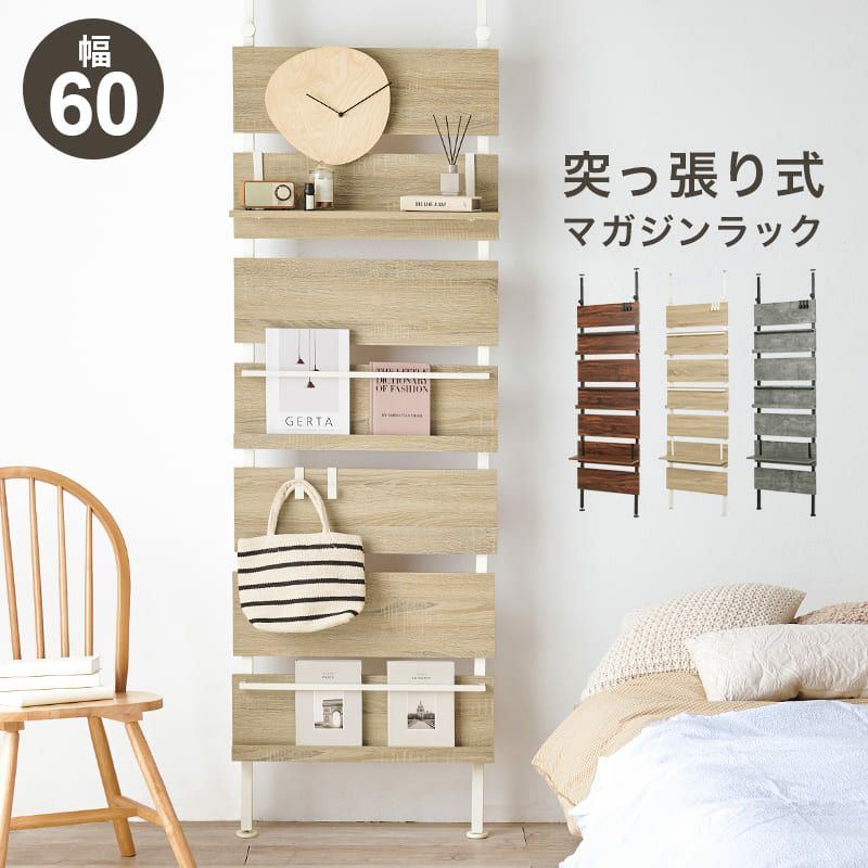 マガジンラック付きの突っ張り式収納 突っ張りマガジンラック 幅60cm