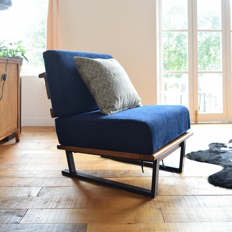 天然木とスチールを組み合わせたデザインのソファ メネス 1人掛