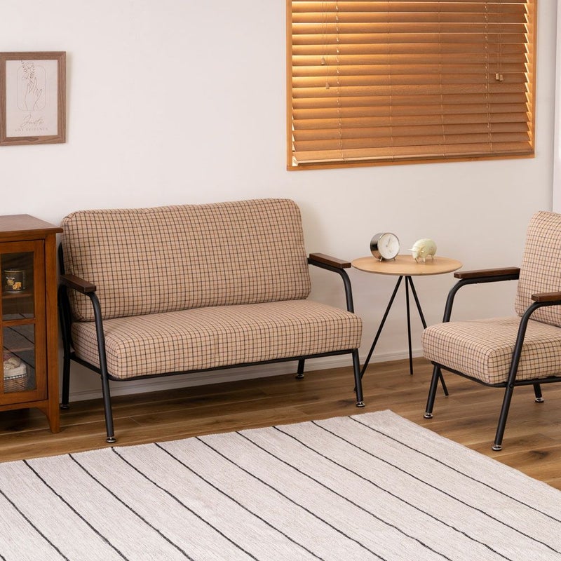 スチール脚とチェック柄ファブリックのソファ プティ