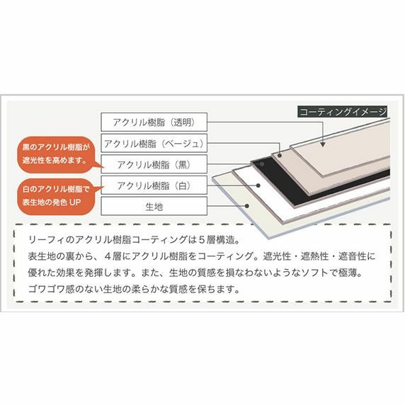 超1級遮光(遮光率:99.99%以上)、遮熱機能、防音機能、形状記憶加工 |