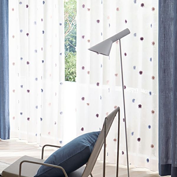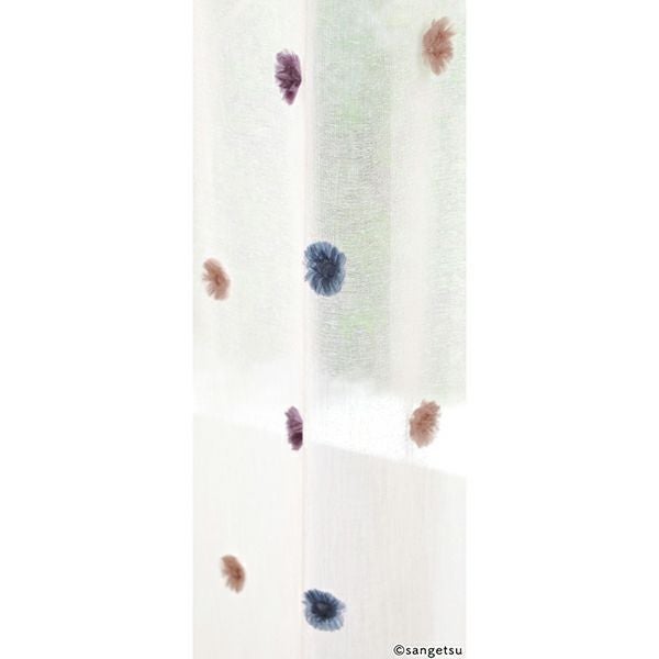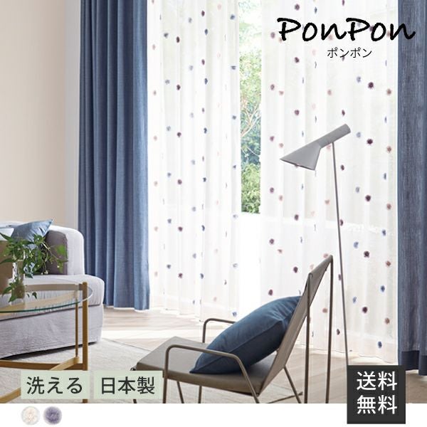 フロントカットのポンポンが可愛らしいデザインのシアーカーテン。