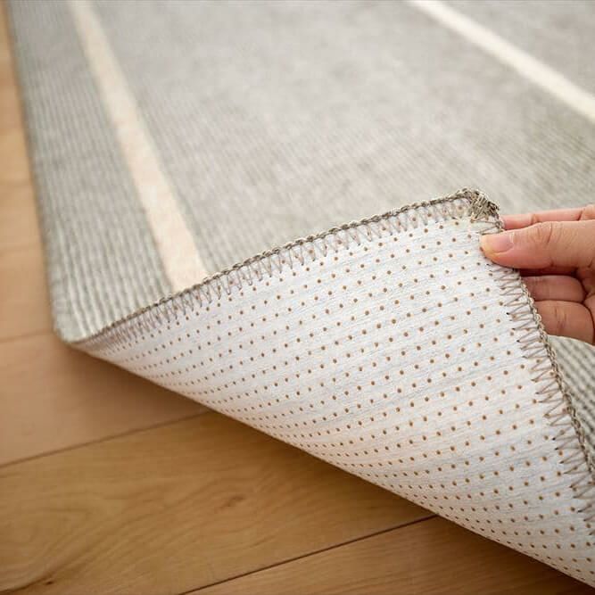 裏面は、ドット滑り止め付き。フローリングの上に敷いても滑らないので安心です。小さなお子様やご高齢の方がいるご家庭でも安心して使えます。